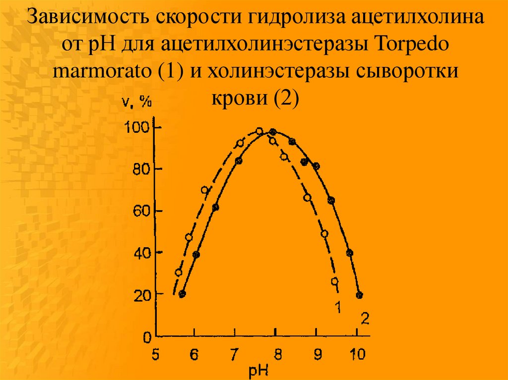 Зависимость скорости гидролиза ацетилхолинаот pH для ацетилхолинэстеразы Torpedo