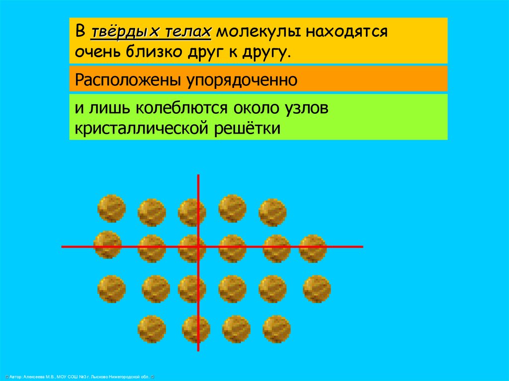 В твёрдых телах молекулы находятсяочень близко друг к другу.