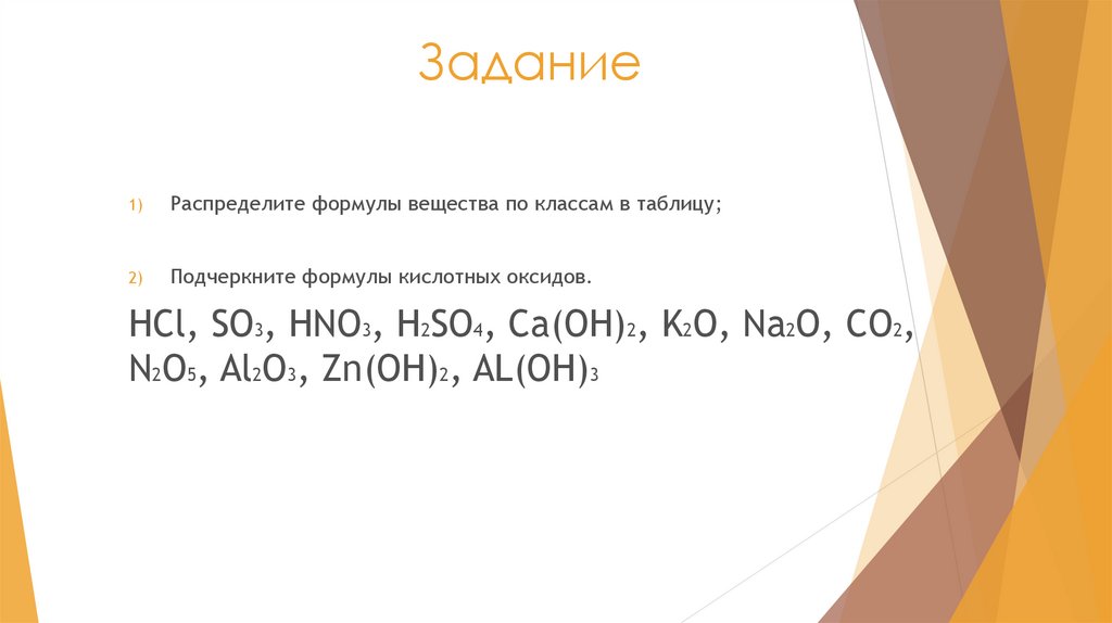Подчеркните формулы кислотных оксидов.