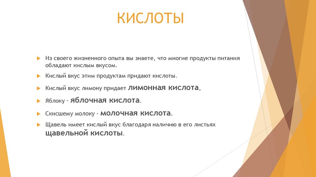 КИСЛОТЫИз своего жизненного опыта вы знаете, что многие продукты питания