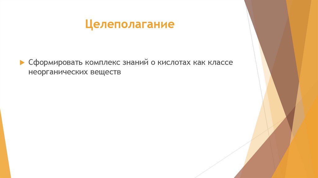 ЦелеполаганиеСформировать комплекс знаний о кислотах как классе