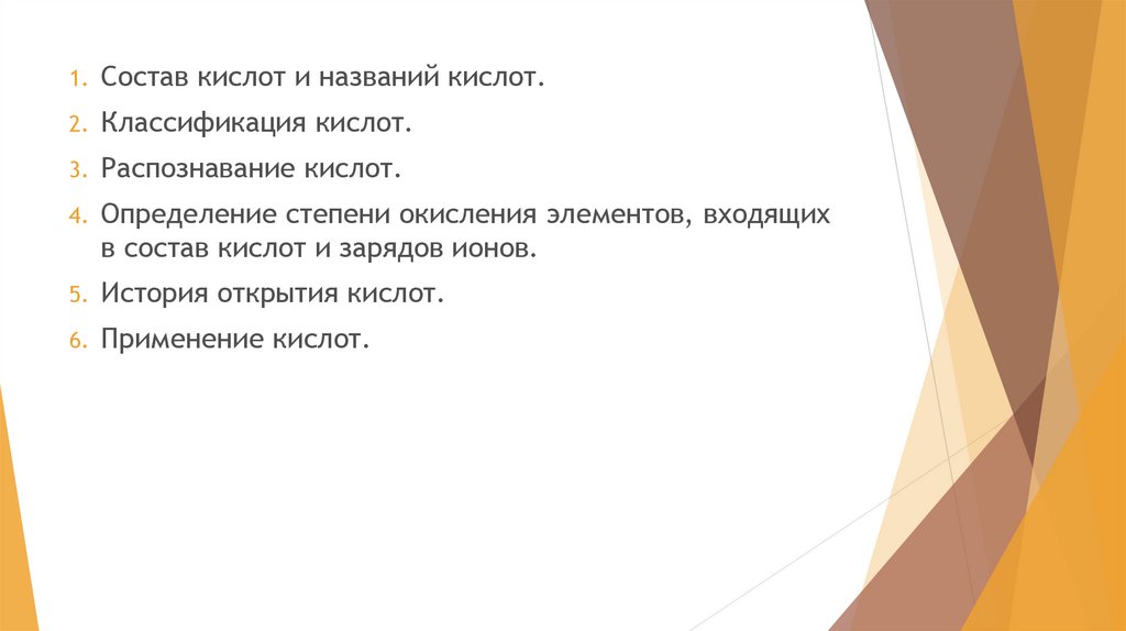 1.Состав кислот и названий кислот.