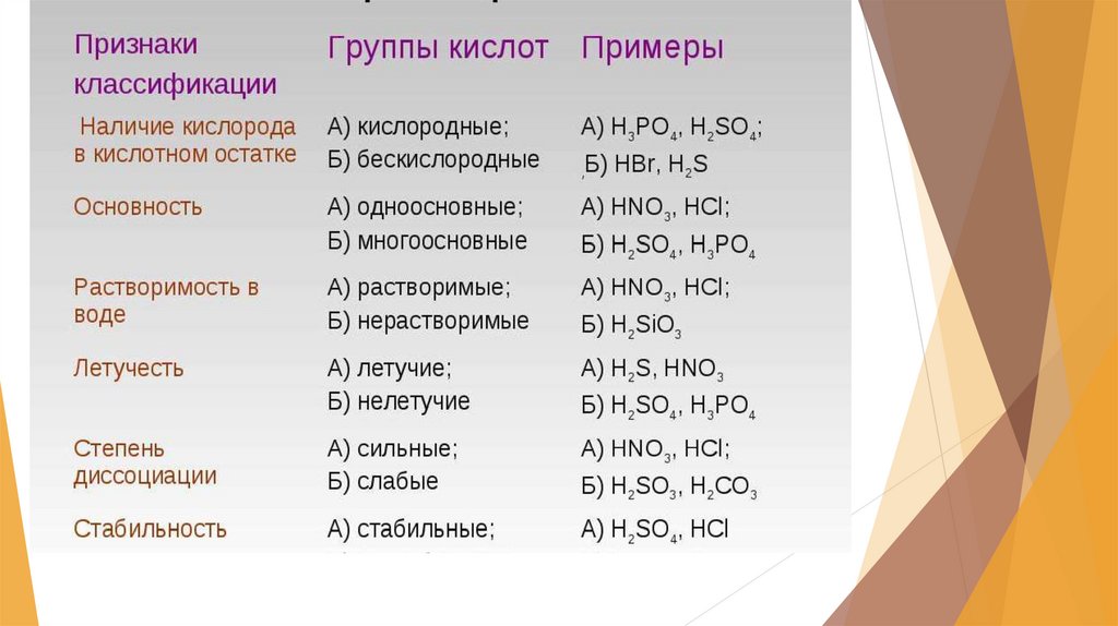 Классификация кислот.
