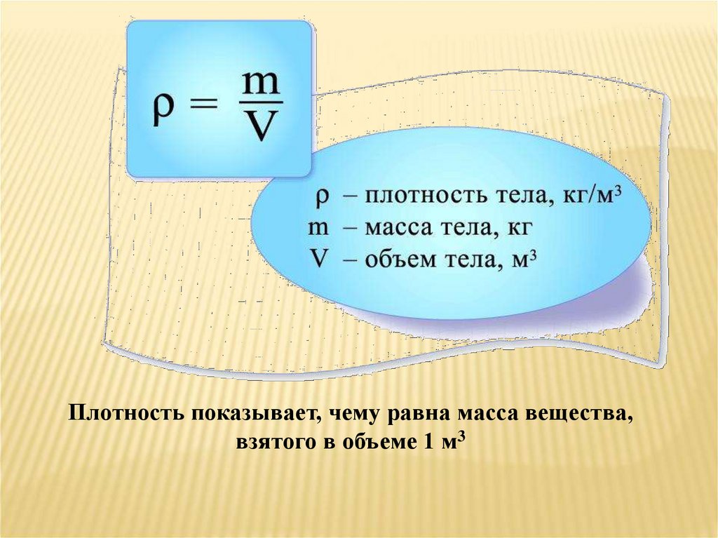 Плотность показывает, чему равна масса вещества,взятого в объеме 1 м3