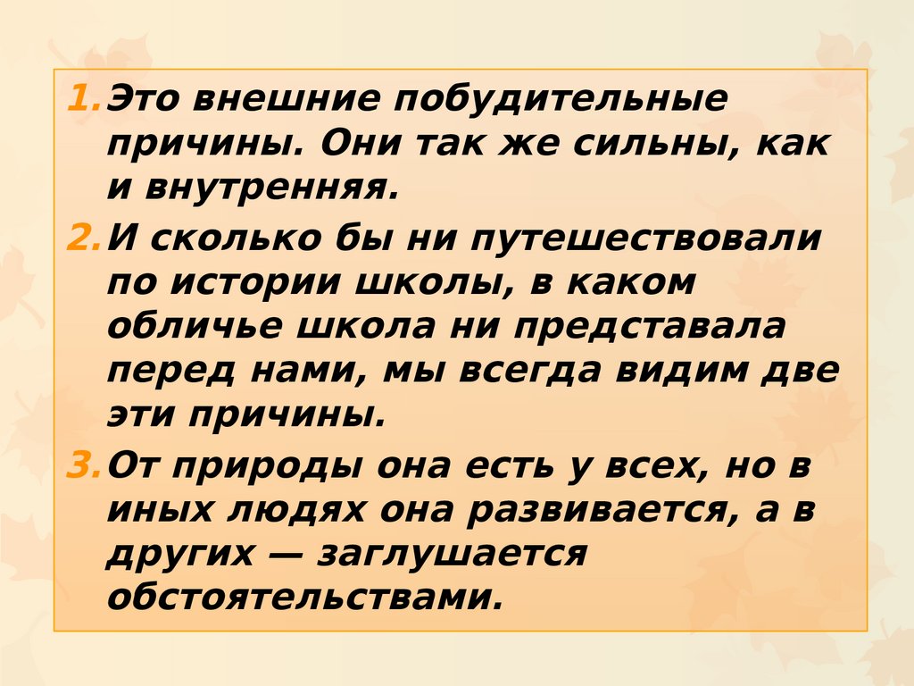 1.Это внешние побудительныепричины. Они так же сильны, как