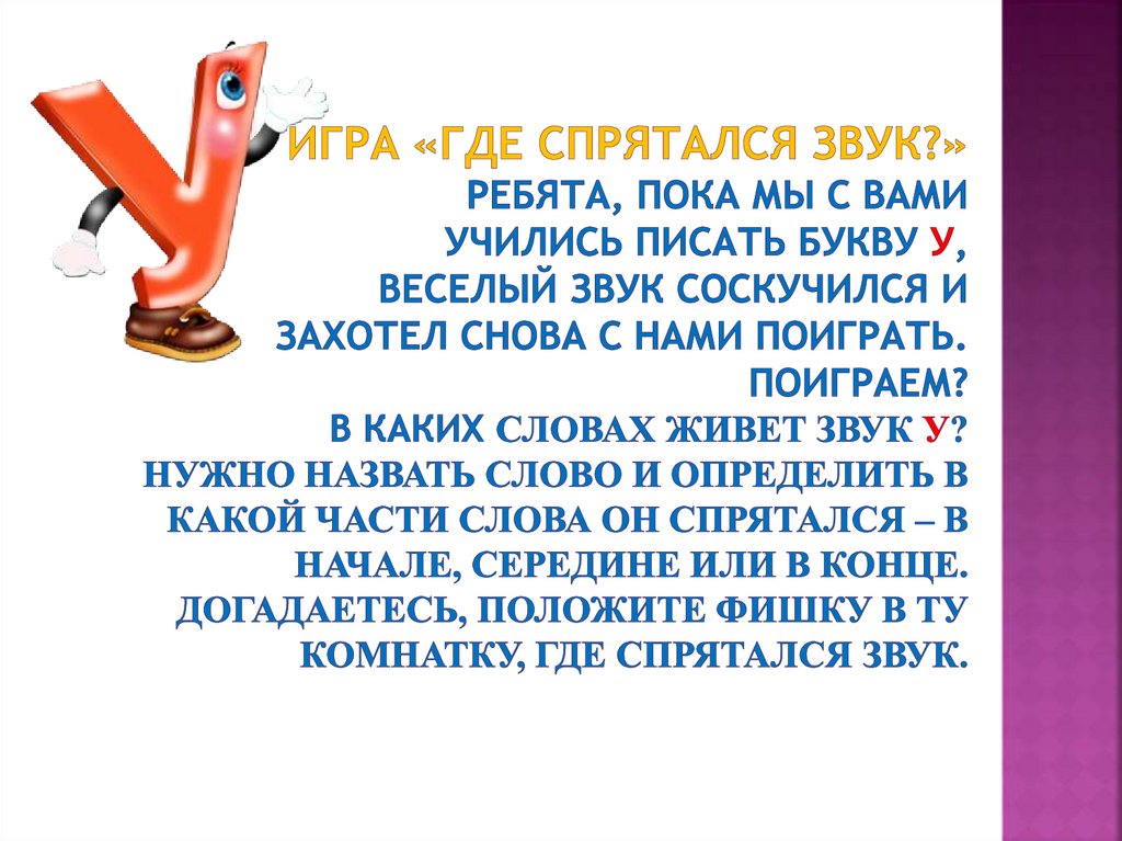 Подготовка к обучению грамоте. Занятие №3 "Звук и буква У"