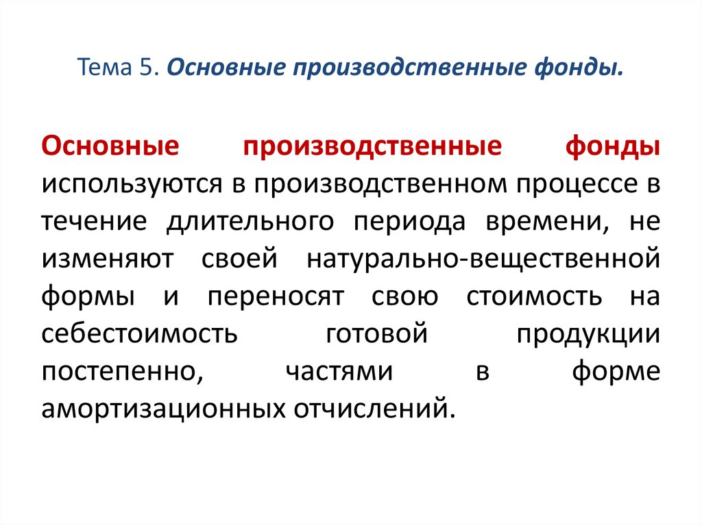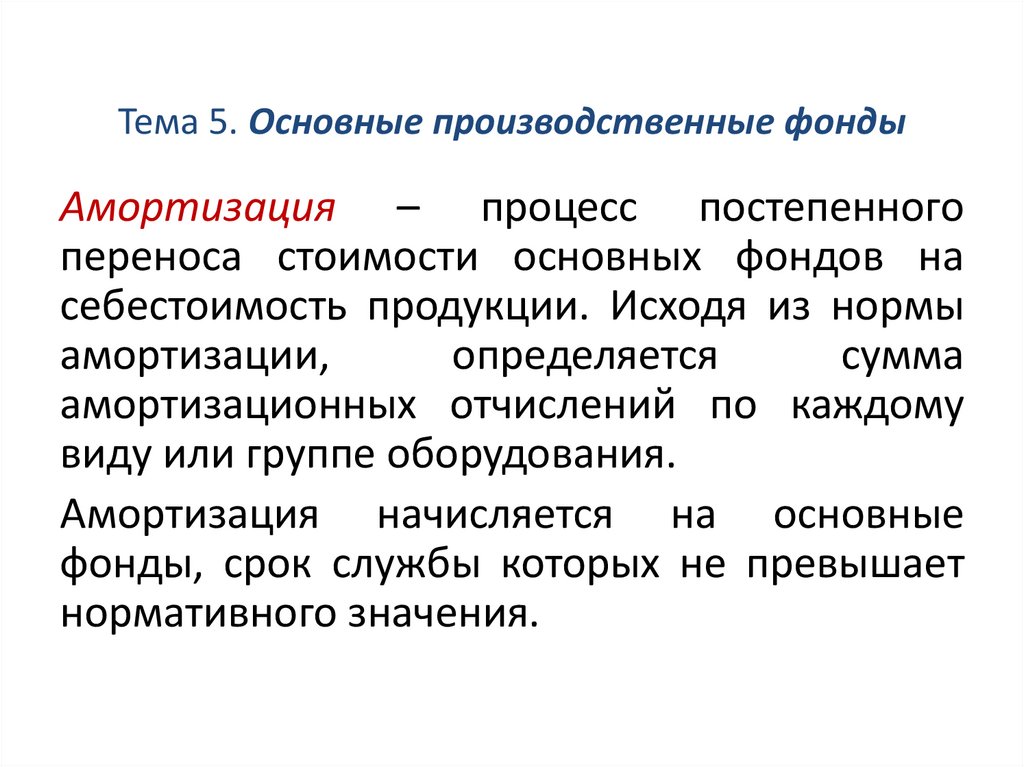 Тема 5. Основные производственные фондыАмортизация – процесс постепенного