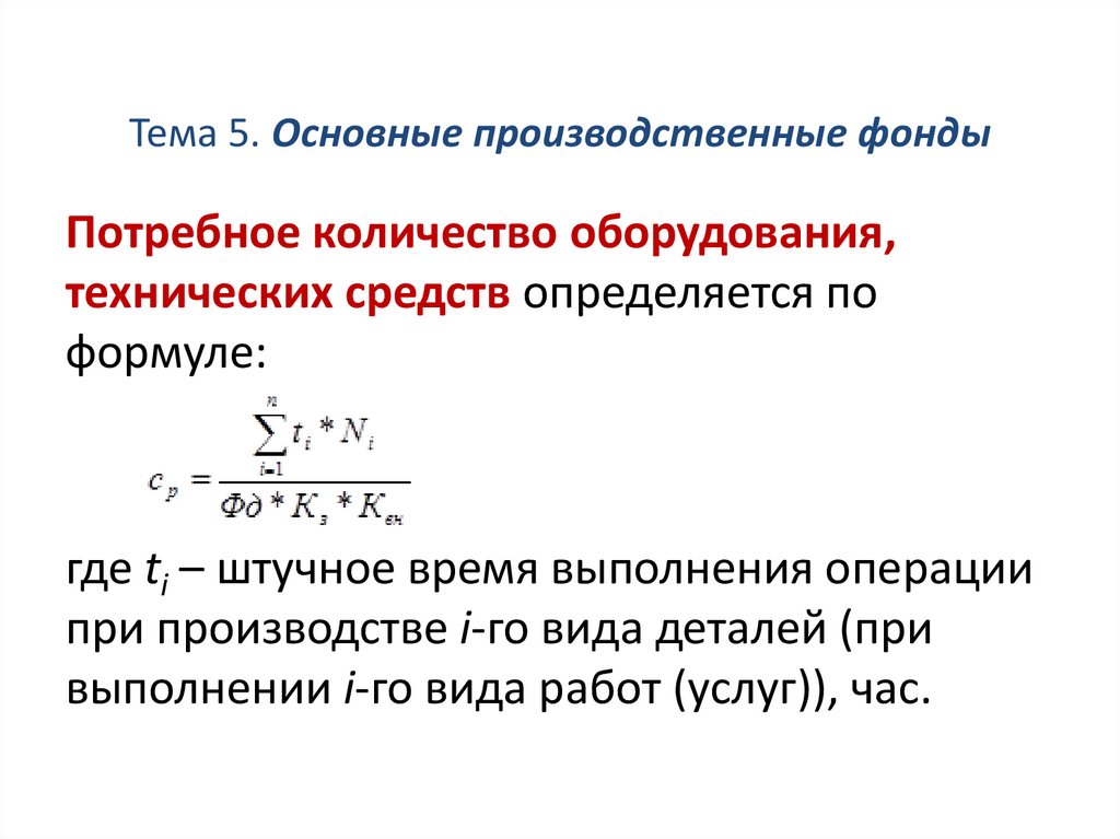 Тема 5. Основные производственные фондыПотребное количество оборудования,