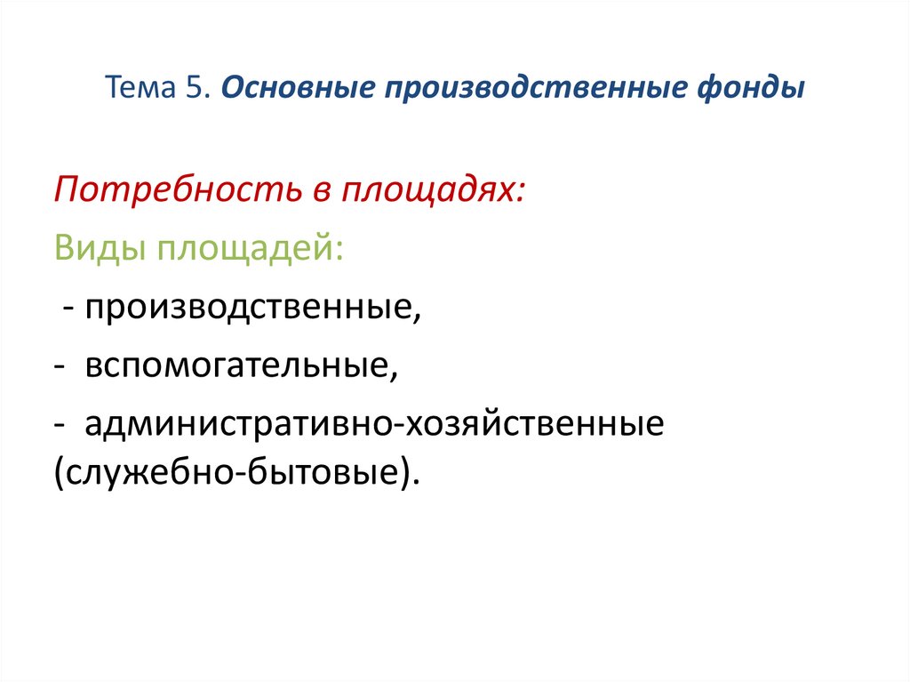 Тема 5. Основные производственные фондыПотребность в площадях: