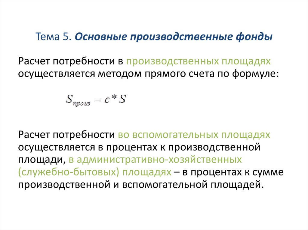 Тема 5. Основные производственные фондыРасчет потребности в производственных площадях