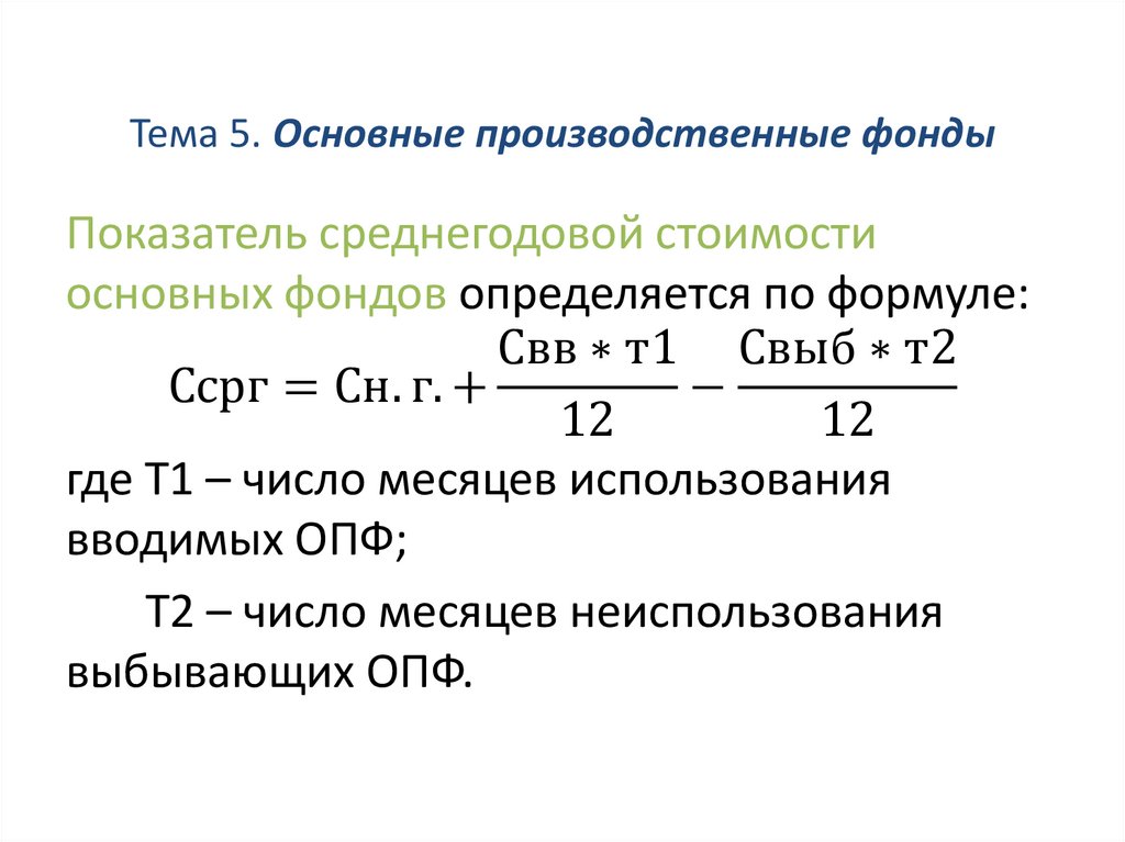 Тема 5. Основные производственные фондыПоказатель среднегодовой стоимости