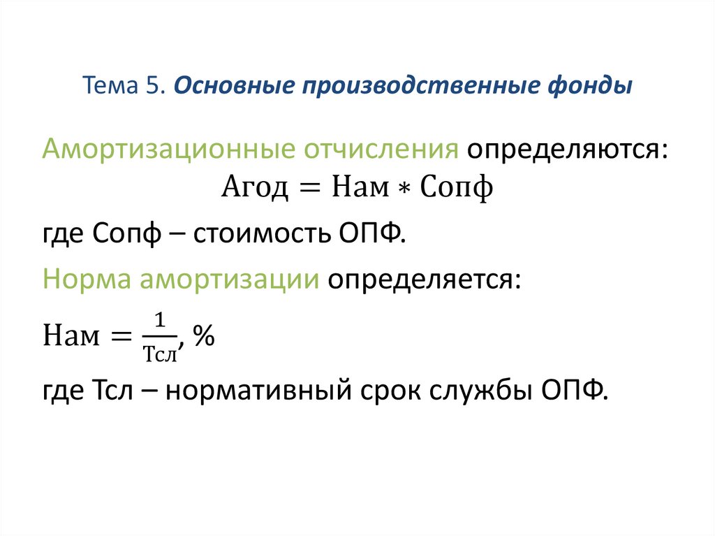 Тема 5. Основные производственные фондыАмортизационные отчисления определяются: