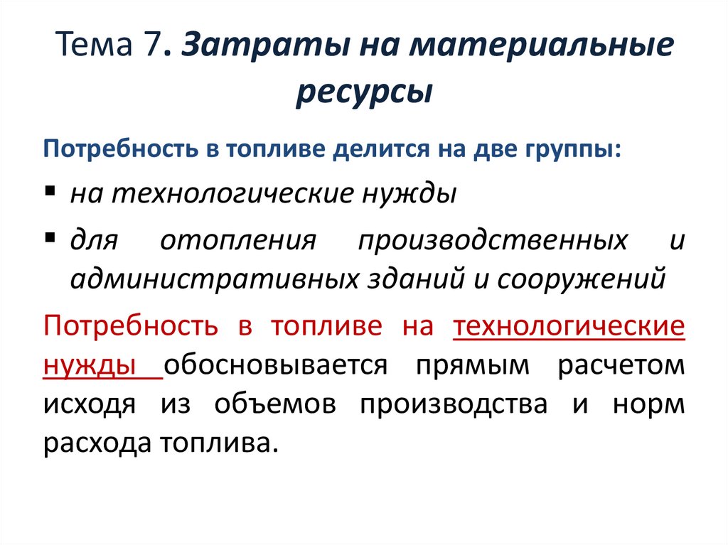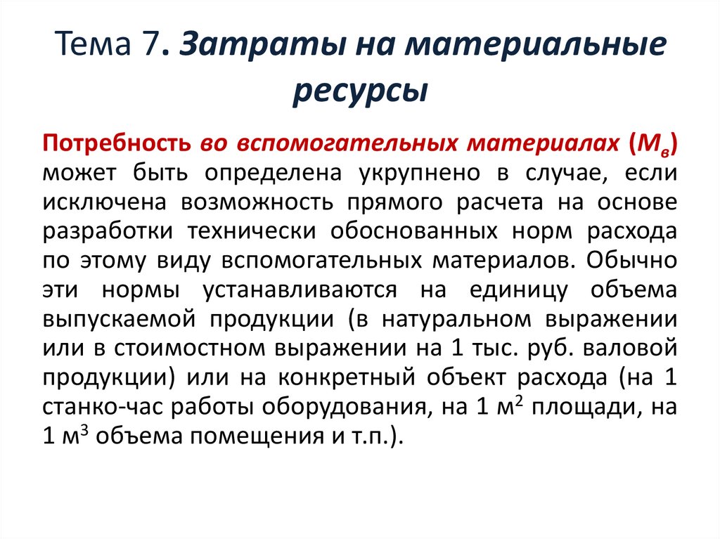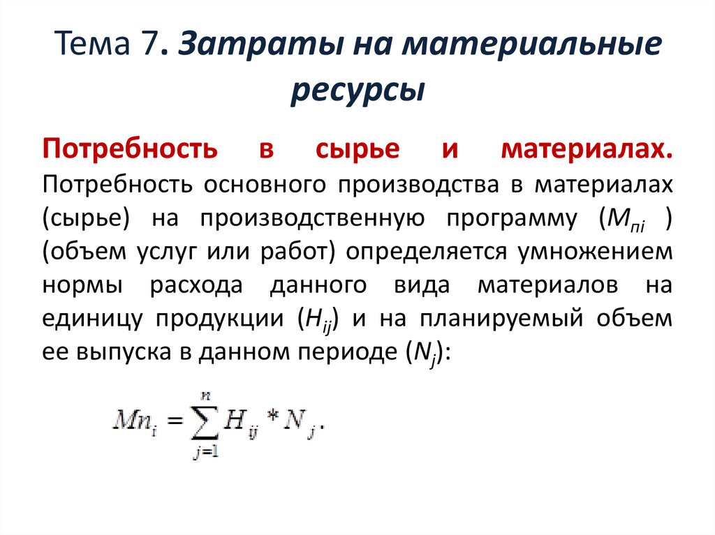 Затраты на материальные ресурсы. Тема 7