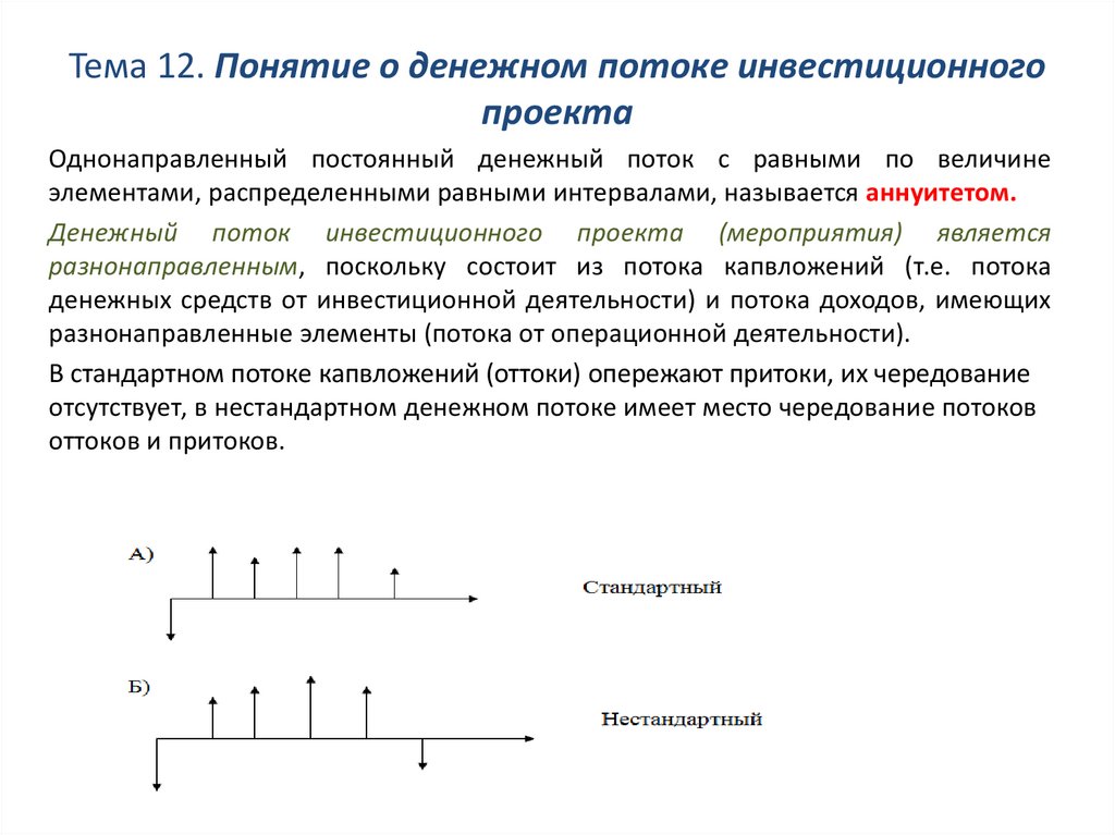 Понятие о денежном потоке инвестиционного проекта. Тема 12