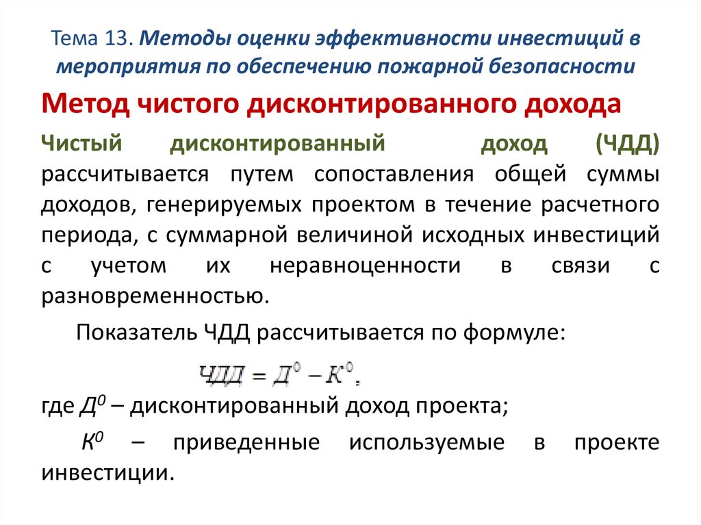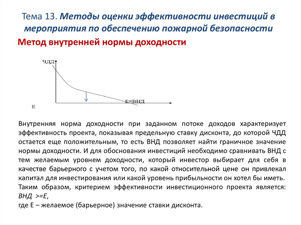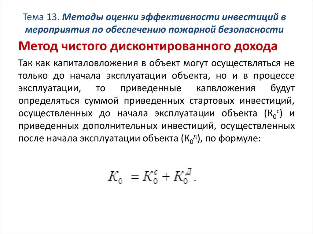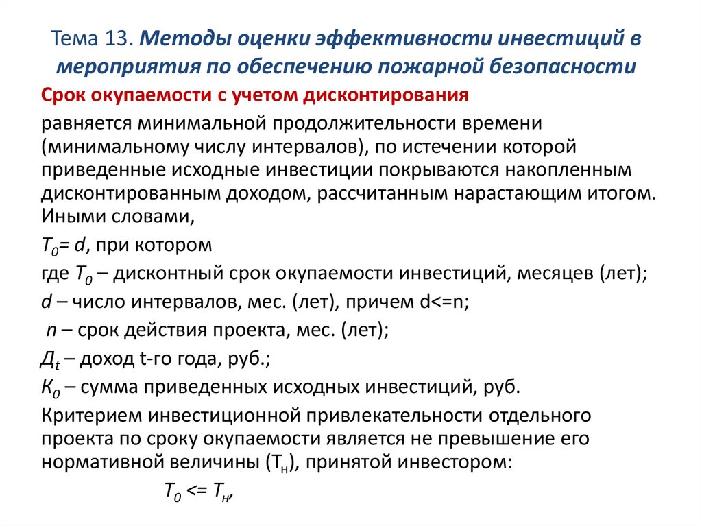 Тема 13. Методы оценки эффективности инвестиций вмероприятия по обеспечению пожарной безопасности
