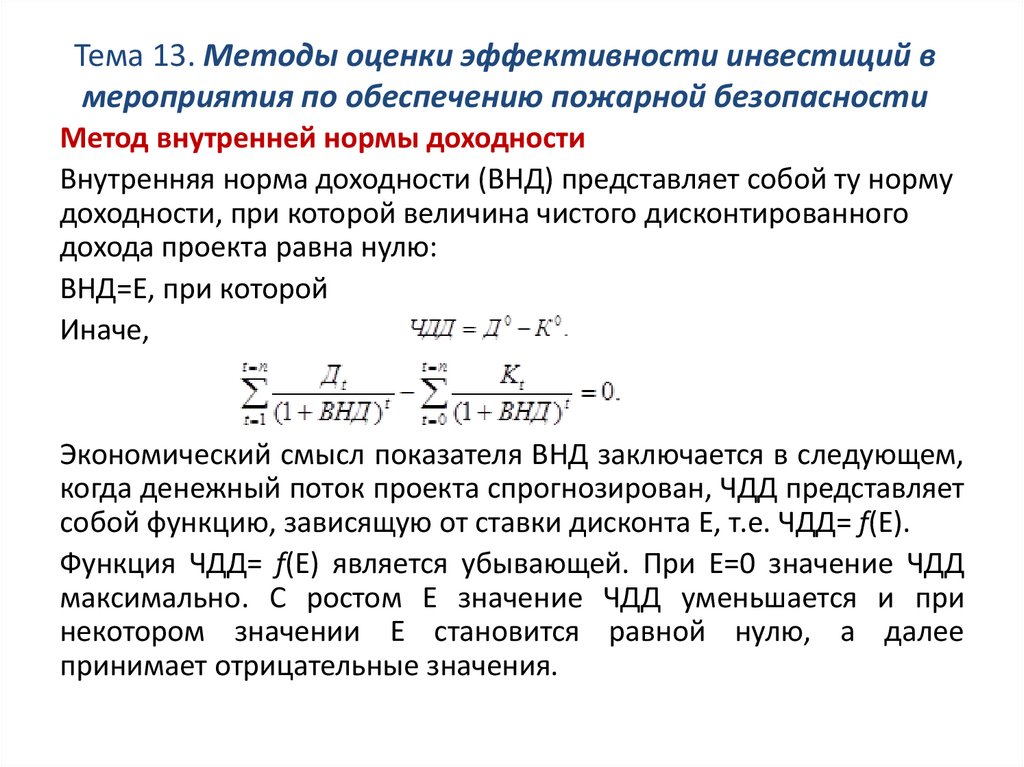 Внутренняя норма доходности (ВНД) представляет собой ту норму