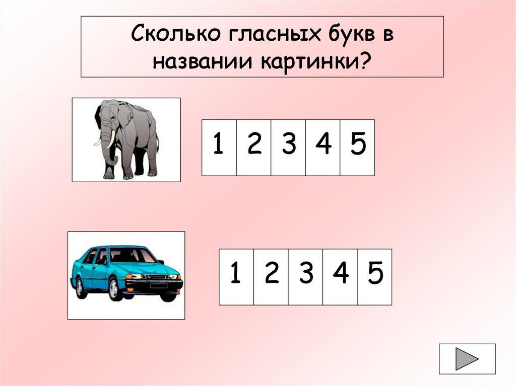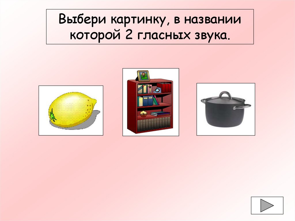 Выбери картинку, в названиикоторой 3 гласных звука.