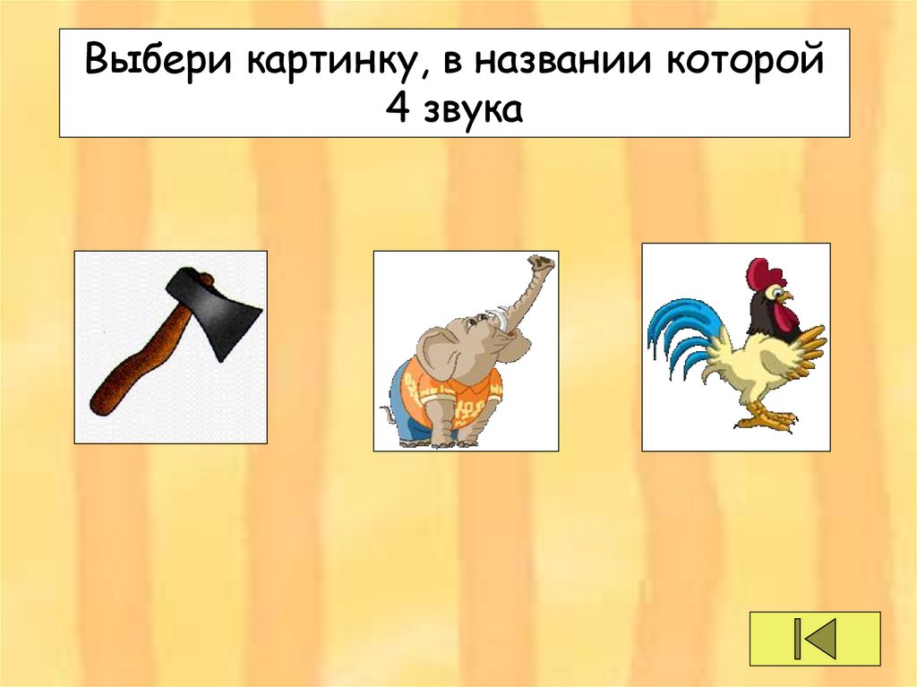 Выбери картинку, в названии которой4 звука