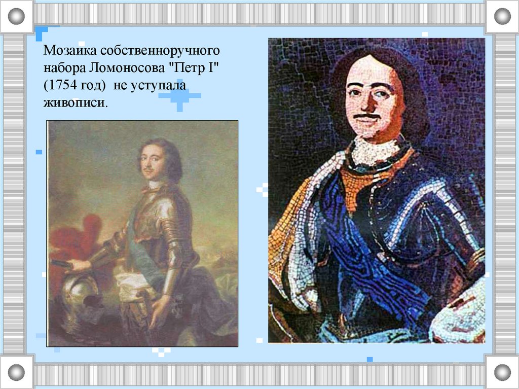 Мозаика собственноручногонабора Ломоносова "Петр I"