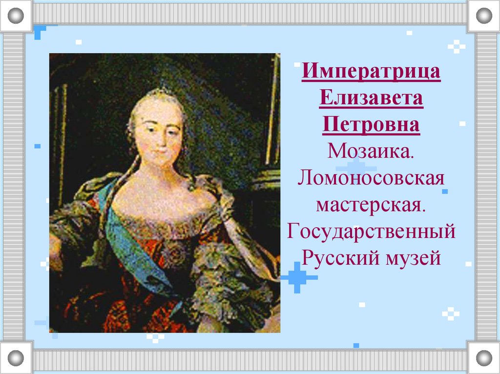 Анна ПетровнаМозаика и её фрагмент. Усть-Рудицы. 1756-1757 г.