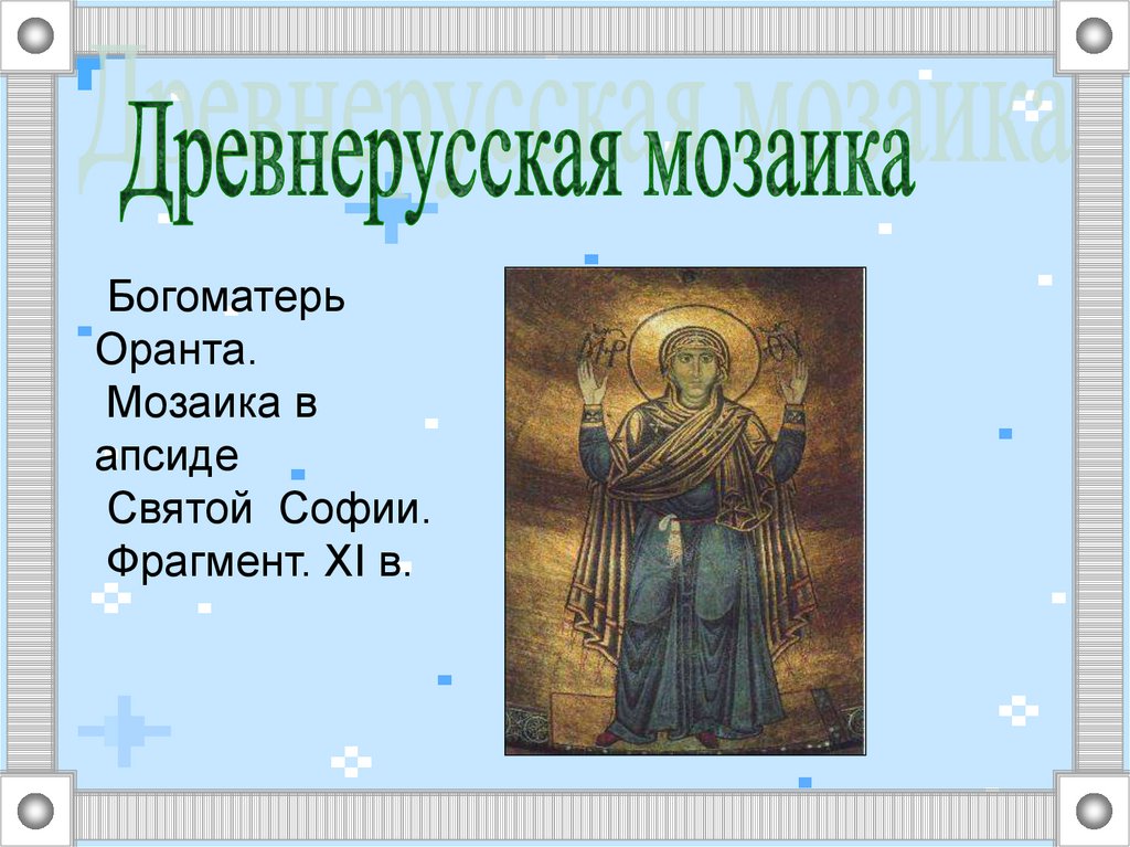 Основные цвета12. Первая, пробная мозаика Ломоносова даже очень декоративна и неловка. Это мозаика "Нерукотворный Спас", которая довольно проста