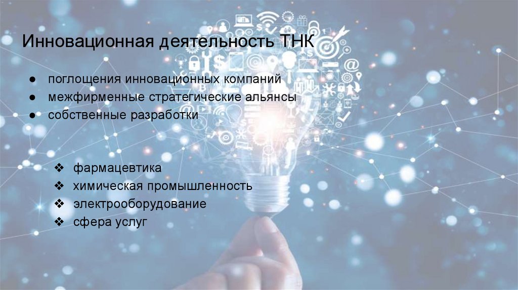 Инновационная деятельность ТНК● поглощения инновационных компаний