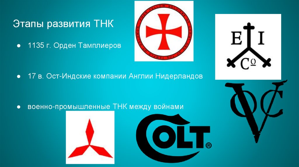 Этапы развития ТНК● 1135 г. Орден Тамплиеров