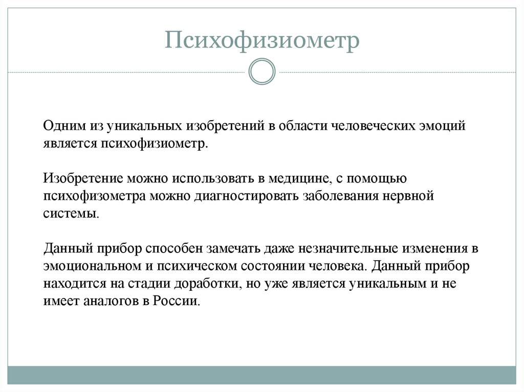 ПсихофизиометрОдним из уникальных изобретений в области человеческих эмоций