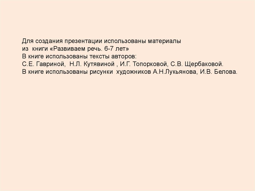 Для создания презентации использованы материалыиз книги «Развиваем речь. 6-7 лет»