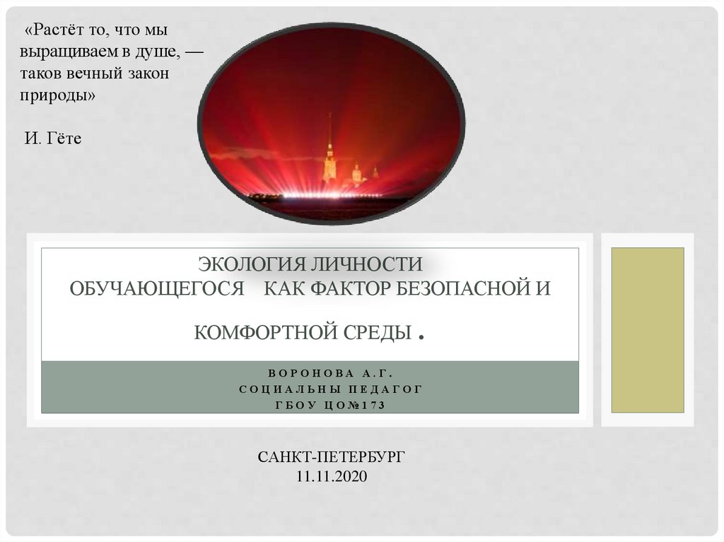 Экология личности обучающегося как фактор безопасной и комфортной среды