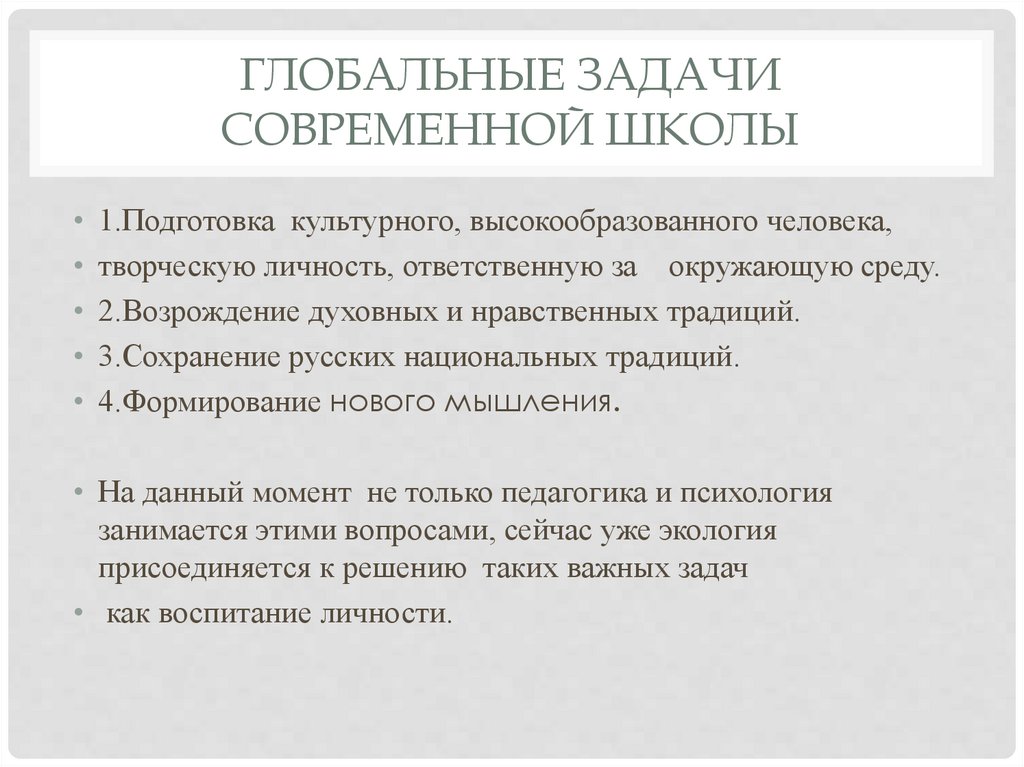 ГЛОБАЛЬНЫЕ ЗАДАЧИСОВРЕМЕННОЙ ШКОЛЫ