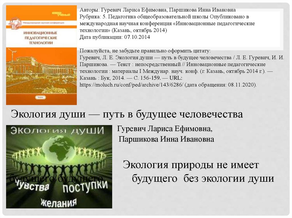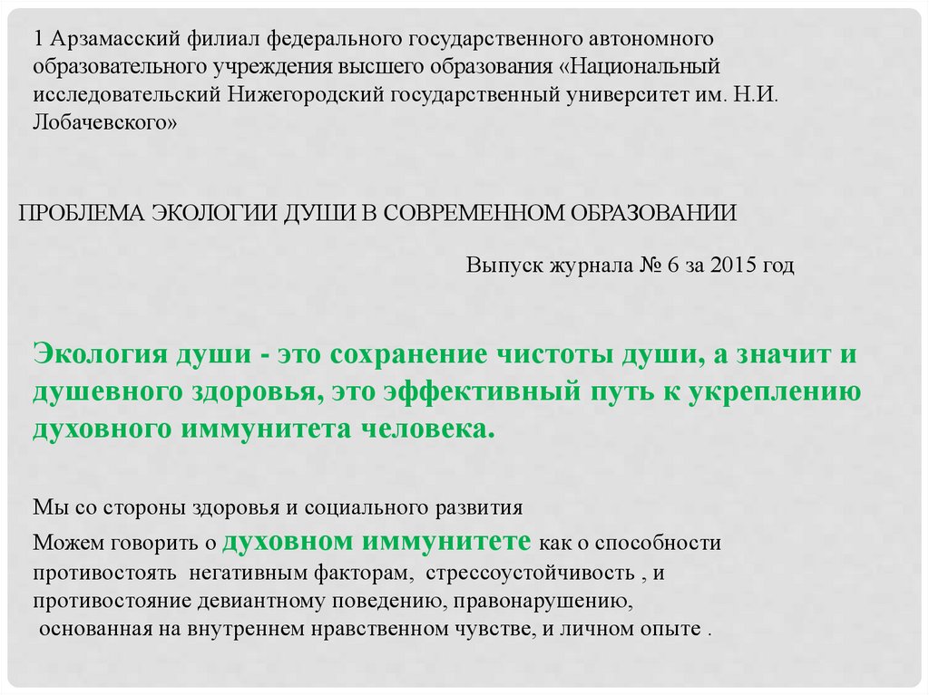 ПРОБЛЕМА ЭКОЛОГИИ ДУШИ В СОВРЕМЕННОМ ОБРАЗОВАНИИ