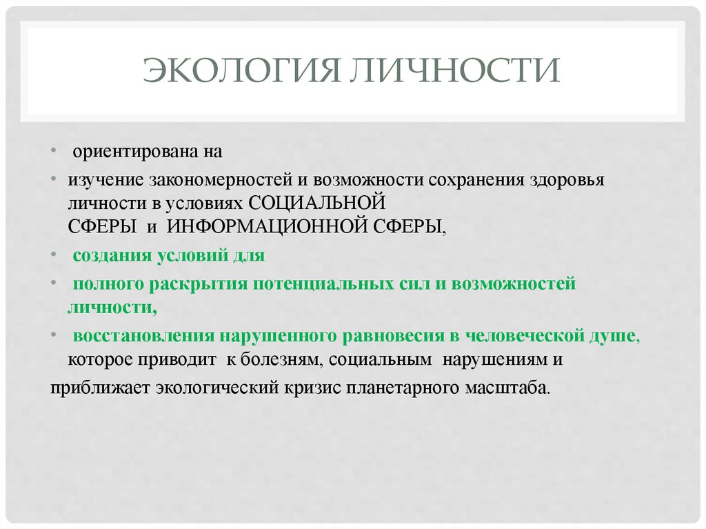 ЭКОЛОГИЯ ЛИЧНОСТИ