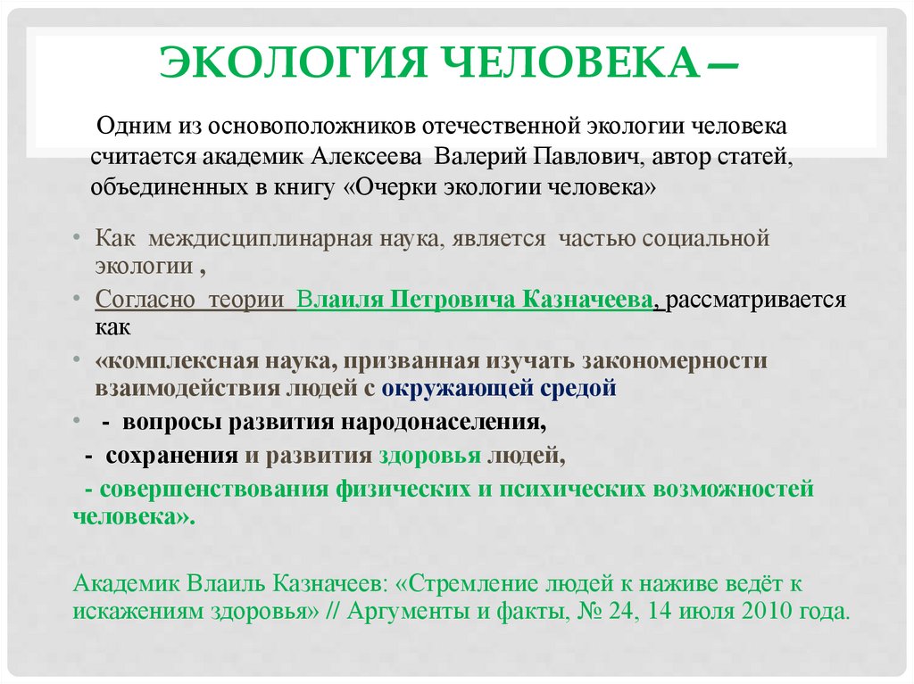 ЭКОЛОГИЯ ЧЕЛОВЕКА—Одним из основоположников отечественной экологии человека