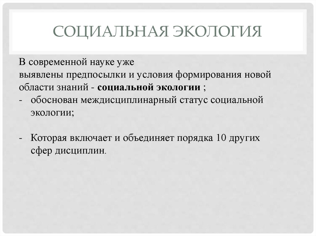 СОЦИАЛЬНАЯ ЭКОЛОГИЯВ современной науке уже