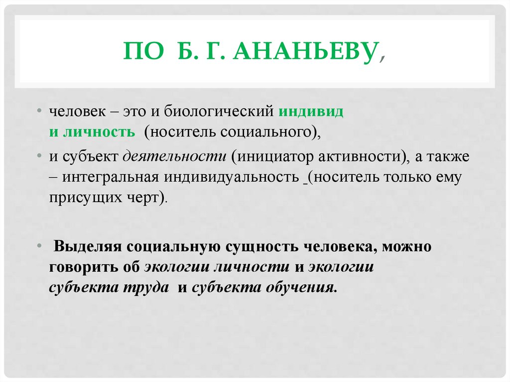ПО Б. Г. АНАНЬЕВУ,• человек – это и биологический индивид