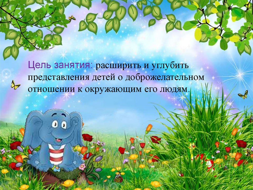 Цель занятия: расширить и углубитьпредставления детей о доброжелательном