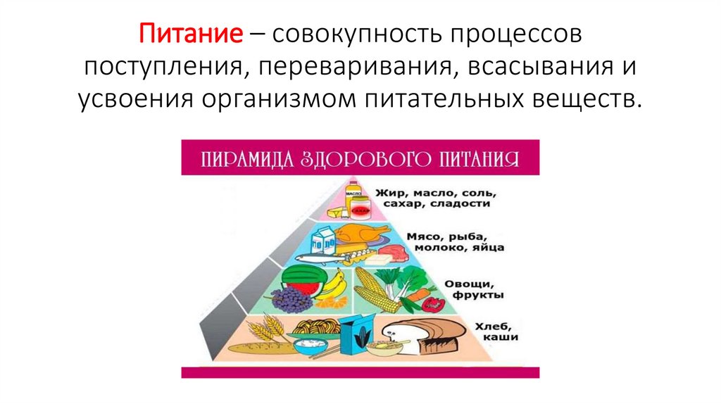 Питание – совокупность процессовпоступления, переваривания, всасывания и