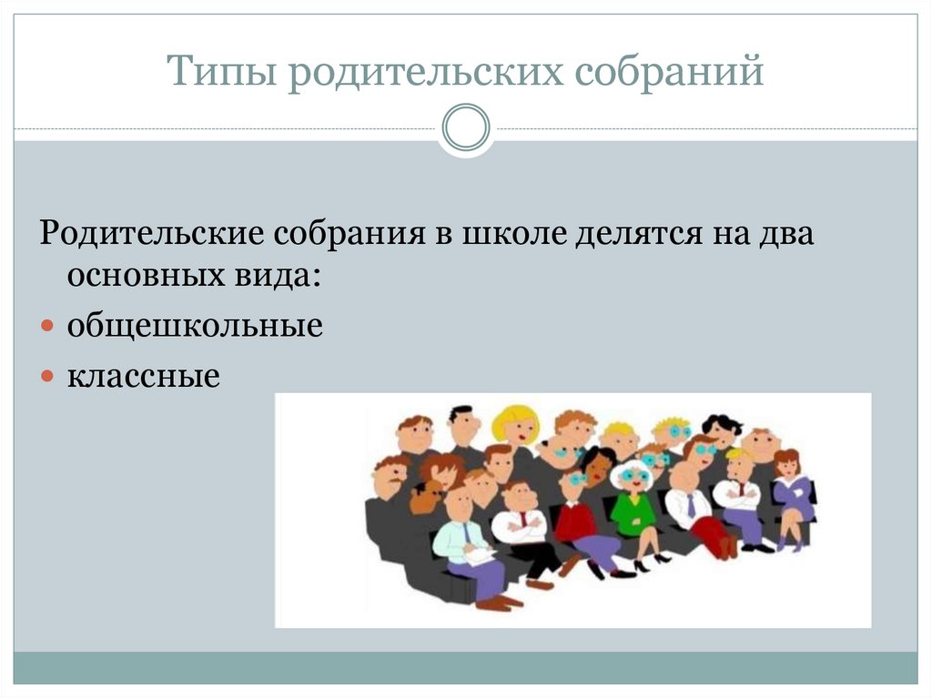 Типы родительских собранийРодительские собрания в школе делятся на два