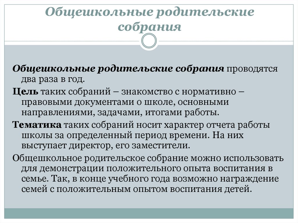 Общешкольное родительское собрание можно использовать