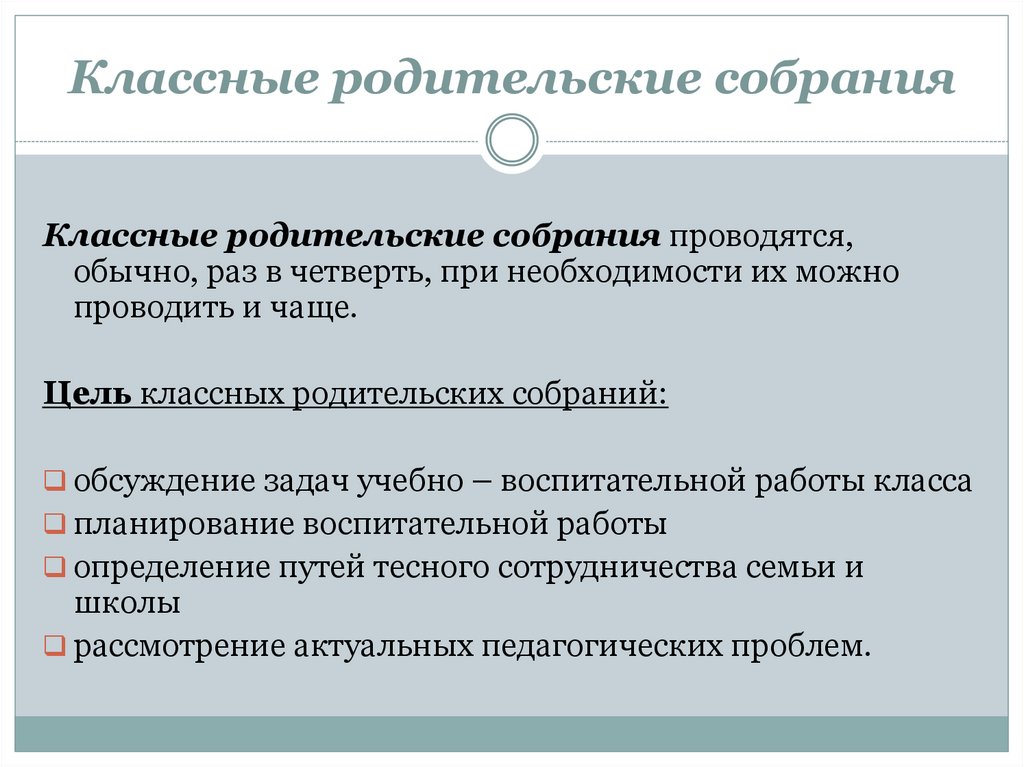 Цель классных родительских собраний: