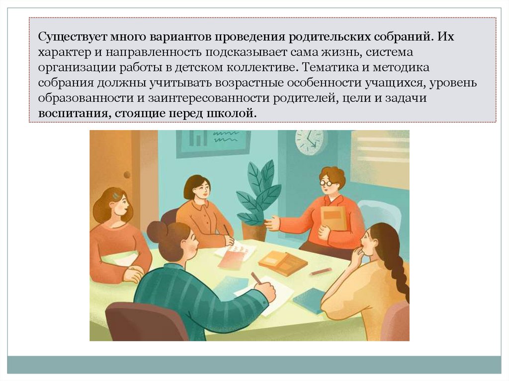 Существует много вариантов проведения родительских собраний. Иххарактер и направленность подсказывает сама жизнь, система