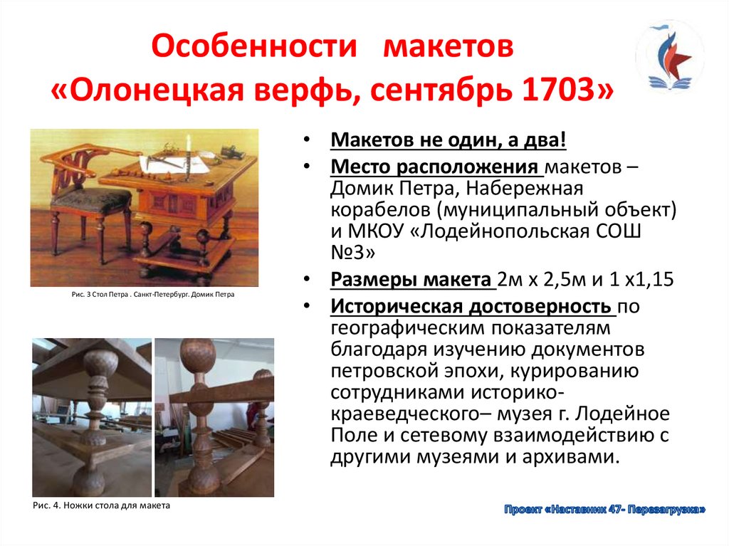 Особенности макетов«Олонецкая верфь, сентябрь 1703»
