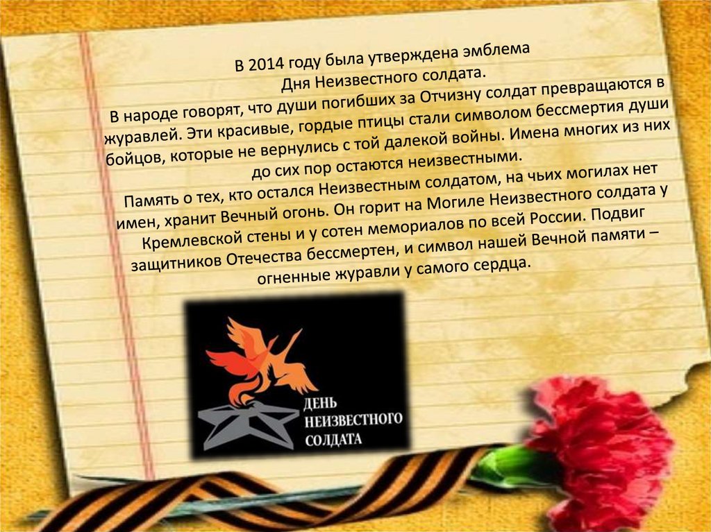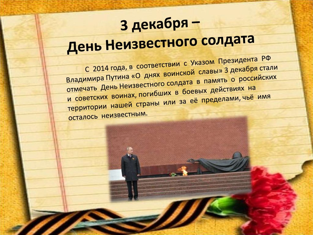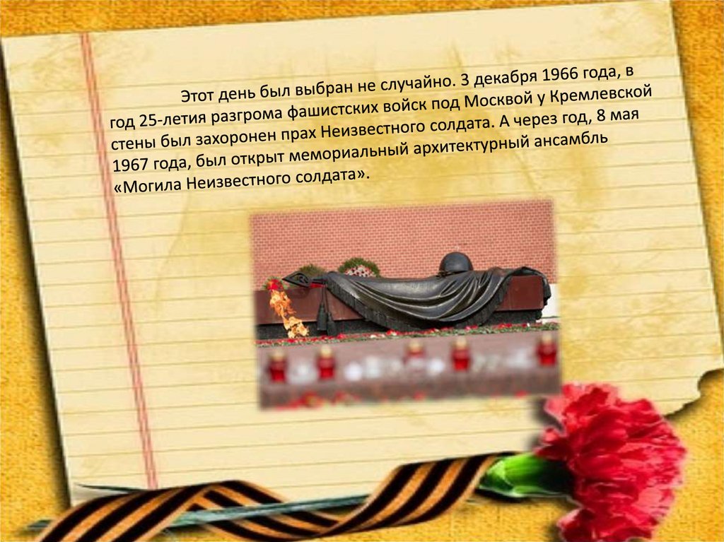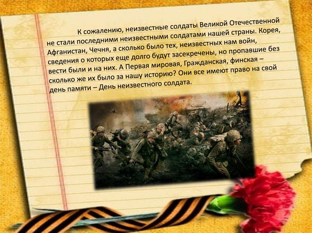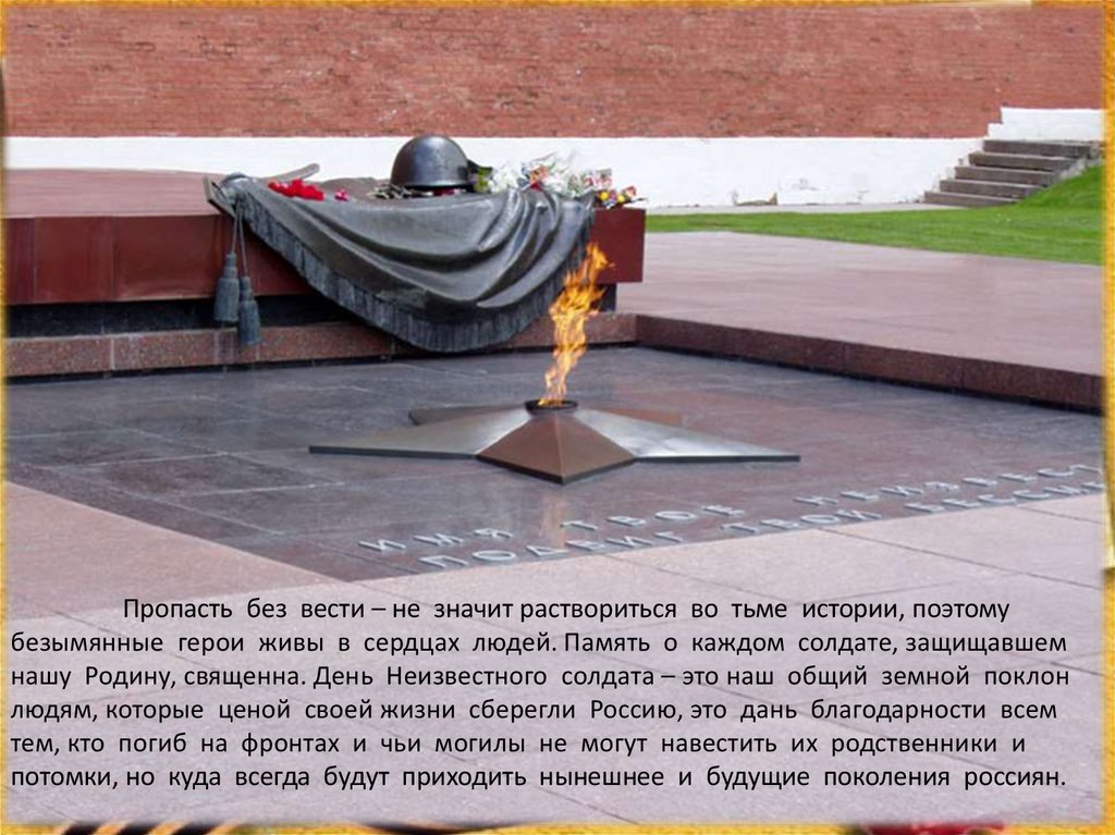 нашу Родину, священна. День Неизвестного солдата – это наш общий земной поклон