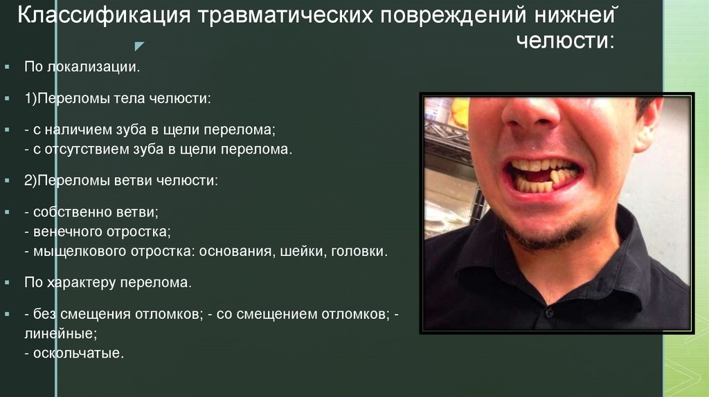 Травматические повреждения нижней челюсти: классификация, клиническая картина, диагностика