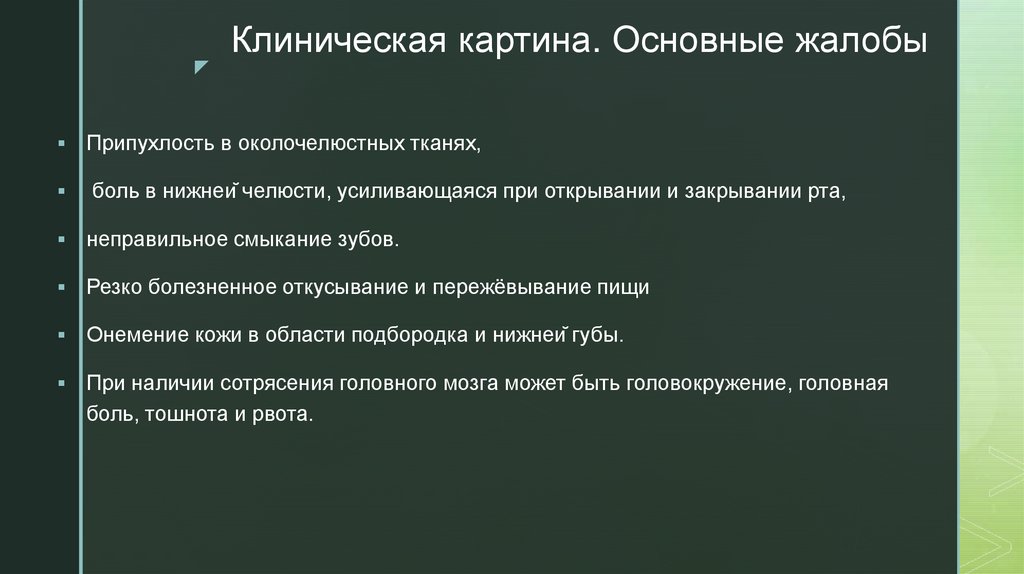 zКлиническая картина. Основные жалобы