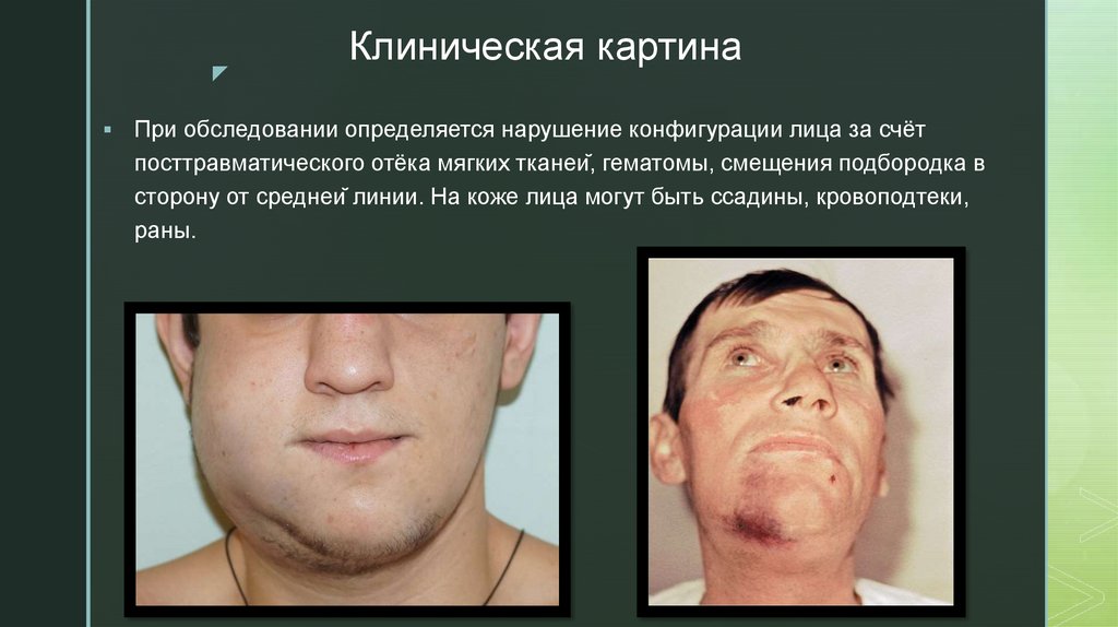 посттравматического отёка мягких тканей, гематомы, смещения подбородка в