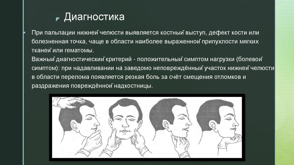 симптом): при надавливании на заведомо неповреждённый участок нижней челюсти