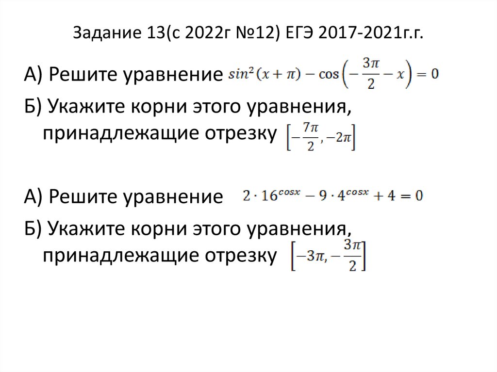 Задание 13(с 2022г №12) ЕГЭ 2017-2021г.г.А) Решите уравнение