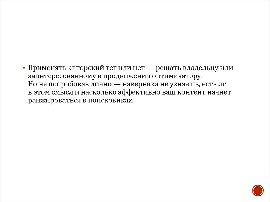 Применять авторский тег или нет — решать владельцу илизаинтересованному в продвижении оптимизатору.